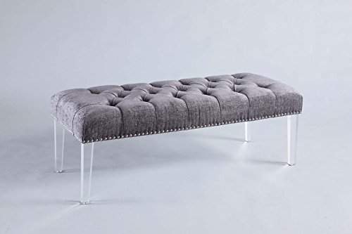 Transitional forty-eight inch wide bench with a hand tufted top in charcoal velvet with acrylic legs for any room in the house