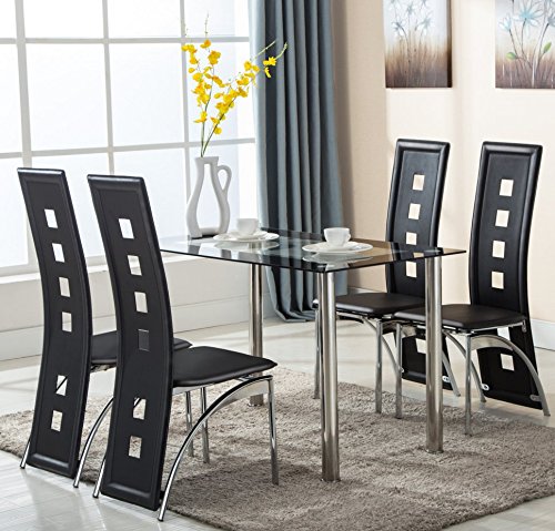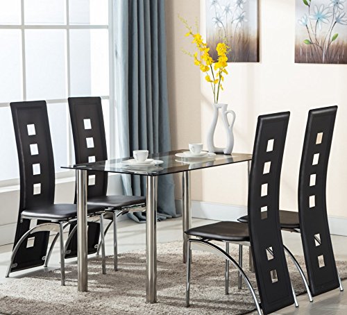 if you like with 5 Piece Glass Dining Table Set 4 Leather Chairs Kitchen Furniture Buy it here