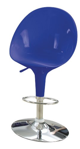 This is a high back adjustable air lift stool comes with blue finish. It lifts to your desired height for a comfortable seating. It has a durable construction with metal base. It features short back. Made up of acrylonitrile butadiene styrene seat an...