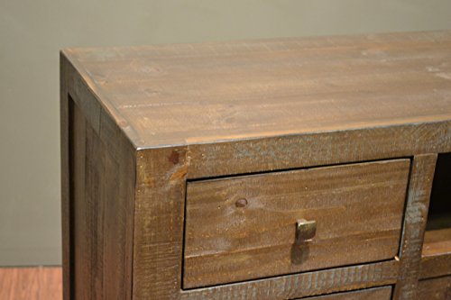 Greenview Forged Iron Base TV Stand with 6 Smooth Glide Drawers and 1 Cabinet Compartment. Open Compartment Perfect For a Sound Bar. Arrives in 7-21 Days. Shipping is totally secure and fully insured.