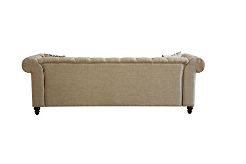 Aurelia sofa collection upholstered in gray & beige color linen fabric. Comfort and style define this sofa collection. This sofa and Loveseat are detailed with classic details like deep button tufts and plush, sheltering arms. Adorned with button tuf...