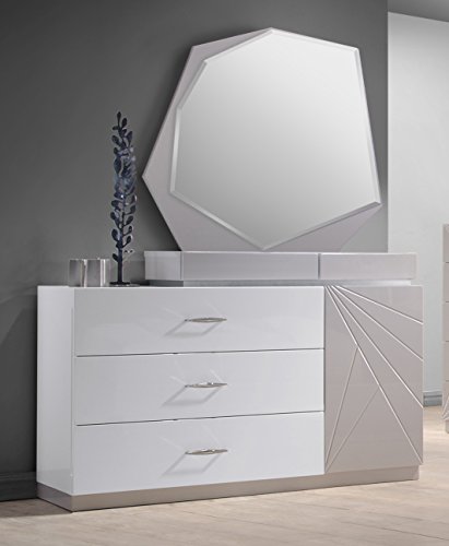 The Florence bedroom by j&m speaks volumes through simplistic details. The modern design made with artistic array of angles features a beautiful white & light grey lacquer finish & an elegant leatherette headboard.
