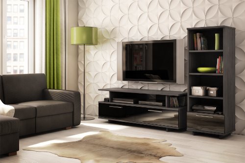 - CONTEMPORARY CLASS: The ultra-trendy gray oak finish is contrasted with black laquer-finish drawer fronts to make a stylish statement in your living room. Perfectly complementing any modern décor, the TV Stand is a sleek, eye-catching accent piece.
