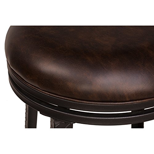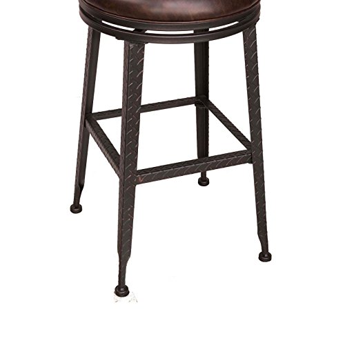 Textured legs and backless design. Antique brown PU fabric. Made from metal. Made in China. Assembly required. Seat height: 30 in.. Overall: 17 in. W x 17 in. D x 30 in. H (17.5 lbs.).