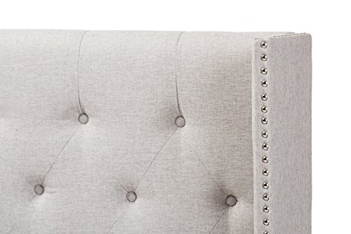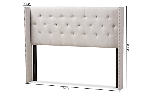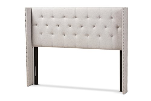 Complete the look of your sleep space with a touch of classic yet modern, textured style with the alloy greyish beige fabric upholstered winged headboard. Constructed of solid rubberwood and plywood frame for long-lasting strength and structural supp...