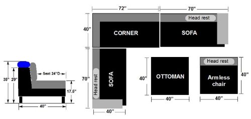 - 5pc includes: Left Sofa + Left Corner Sofa + Right Sofa + Ottoman + Armless Chair + 3 headrests. (Configuration is as shown in the photos)