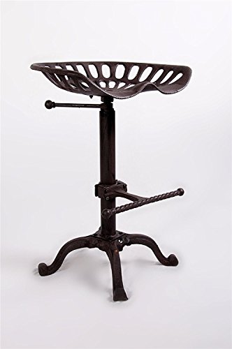 Powder coated finish.Vintage iron tractor seat.Claw-footed base. Item Dimensions:14''*17''*23.6''-29.5''(26lbs)