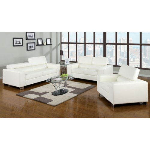 Makri Contemporary Style White Bonded Leather 3-Piece Sofa Set with 247shopathome nearby Hammond
